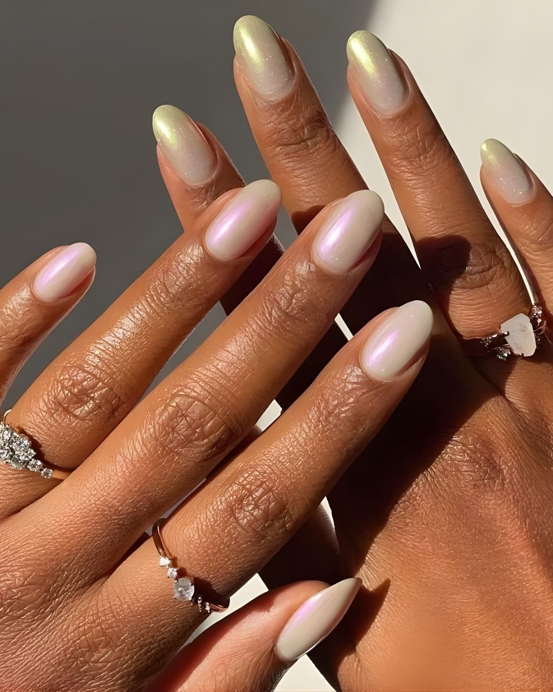 Hiệu ứng lấp lánh và ánh xà cừ dự kiến sẽ trở nên phổ biến vào năm 2025. Thiết kế này không chỉ mang lại vẻ đẹp huyền bí và sang trọng mà còn là lựa chọn hoàn hảo cho những sự kiện quan trọng như tiệc cưới hay lễ hội, giúp đôi tay của bạn thêm phần nổi bật và thu hút ánh nhìn. Sự kết hợp giữa ánh sáng và màu sắc tạo nên một bộ móng thật sự ấn tượng và cuốn hút.