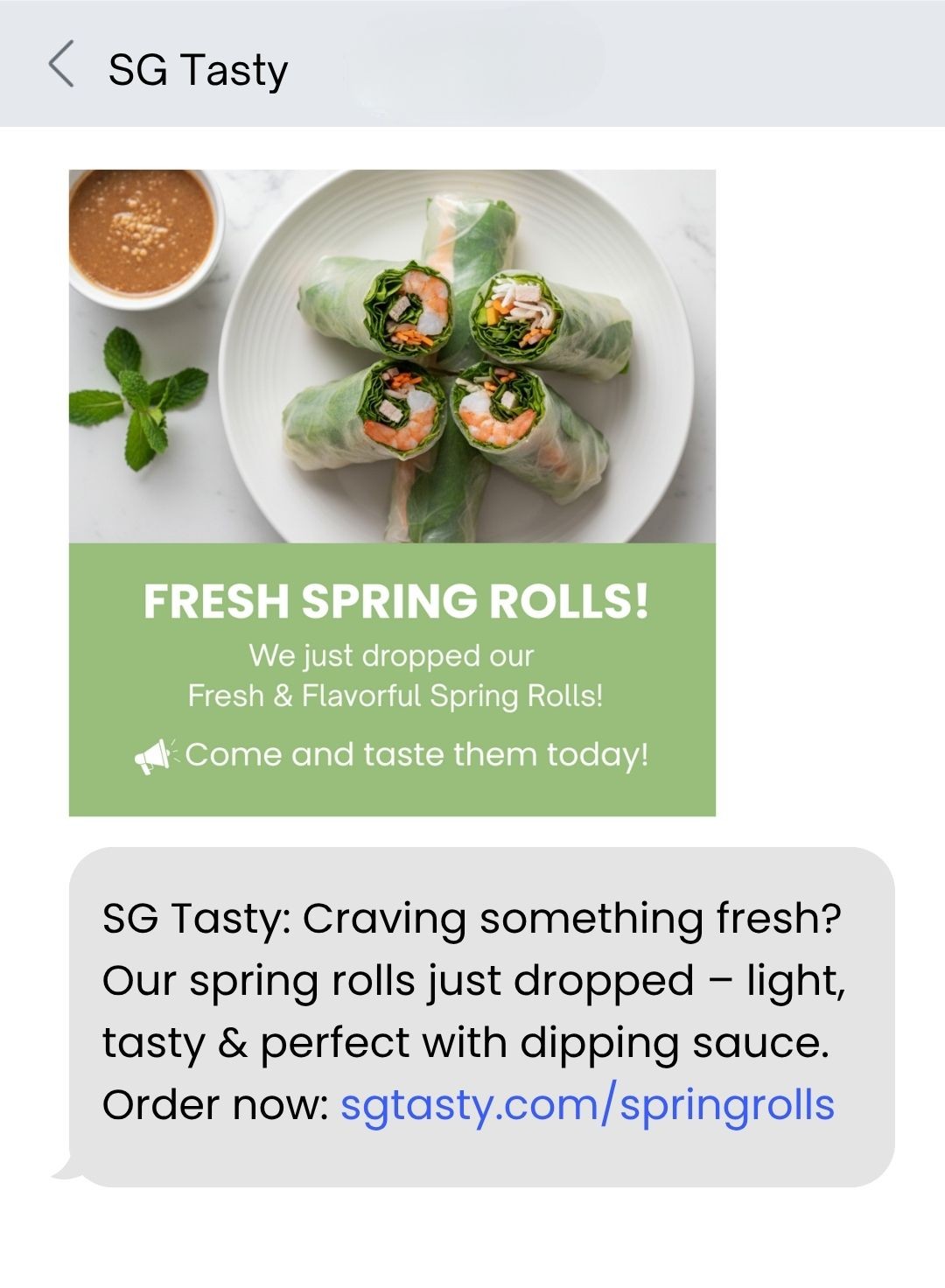Khi có món ăn mới, hãy sử dụng SMS để khơi dậy sự tò mò và háo hức từ khách hàng.